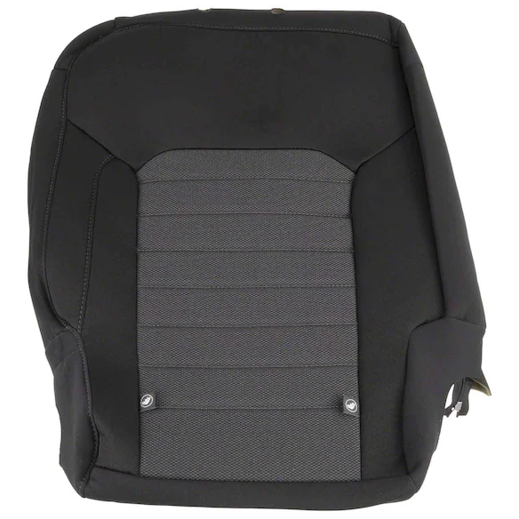 A Cover used to replace the original equipment Seat Back Cushion Cover of a vehicles Seat. Convertible, without VentED SeatS without RECARO. To 12 / 18 / 2023 onyx (2W). Cloth / Trim #2 / Onyx. Sports Seat - Ebony - All Cloth Trim Ebony.