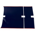 • A picture, design, or label that will stick to the surface of the hood. With Accent Stripe Blue with Red Strip.